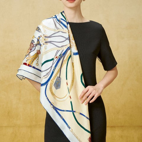 This 14 mm satin silk printed scarf is as light as a feather, offering an incredibly soft and comfortable feel. The unique printed design seamlessly blends with the lustrous silk, exuding elegance and refinement. Whether gently draped around your neck or flowing with the breeze, it adds a touch of lightweight luxury to every outfit.